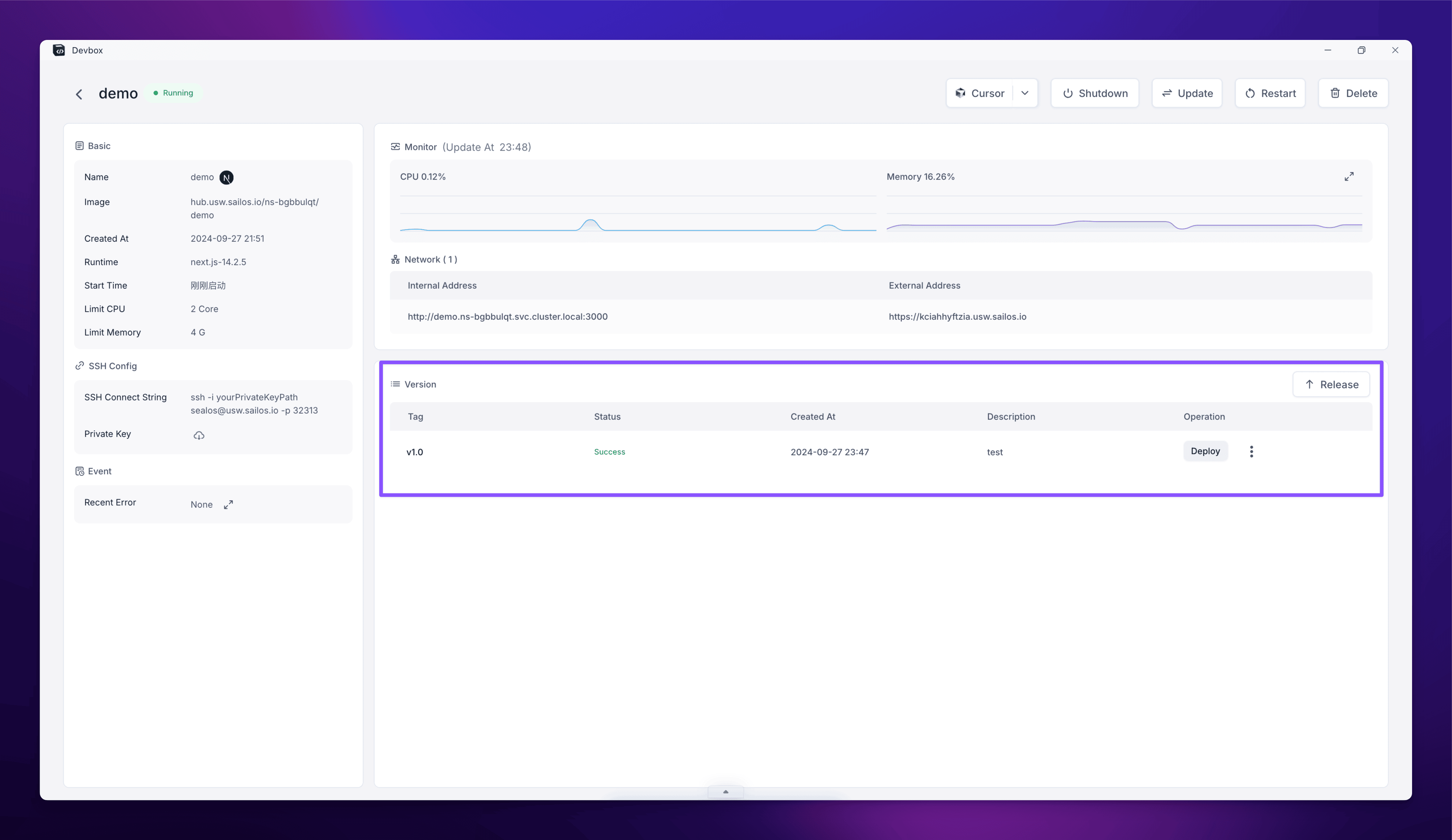 After releasing your Next.js application as an OCI image, you can deploy it to Sealos Cloud for production use. Here's how to do it: